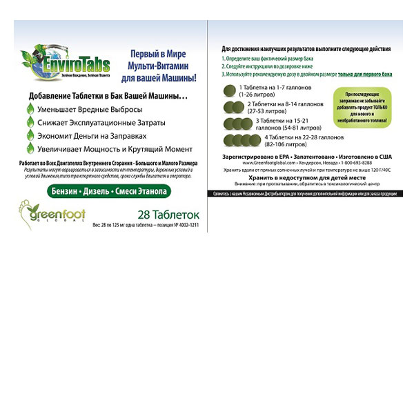 EnviroTabs PRO – добавка в топливо для автомобиля в виде таблеток и гранул, которая: