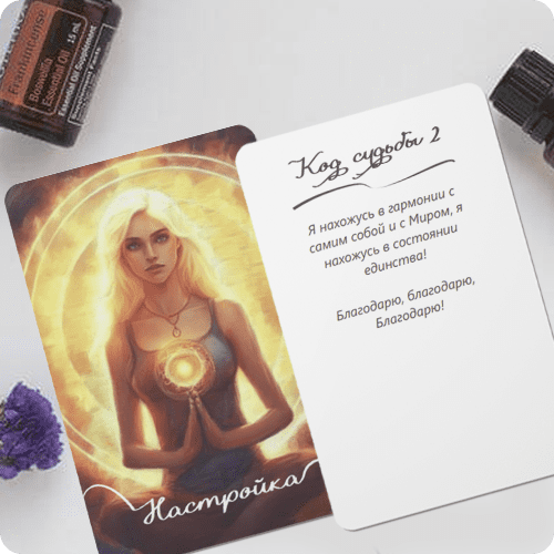 Индивидуальный арома код в сочетании с мощными вибрациями эфирных масел и проговариванием специальных настроек, запускают сильнейший энергетический процесс, изменяя обстоятельства в жизни в лучшую сторону!