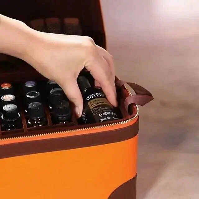 Это отличный вариант для хранения эфирных масел дома или для транспортировки ваших любимых масел в путешествия или для походов в баню и сауну. Органайзер выполнен в ярком оранжевом цвете, что делает его заметным и удобным для быстрого поиска.