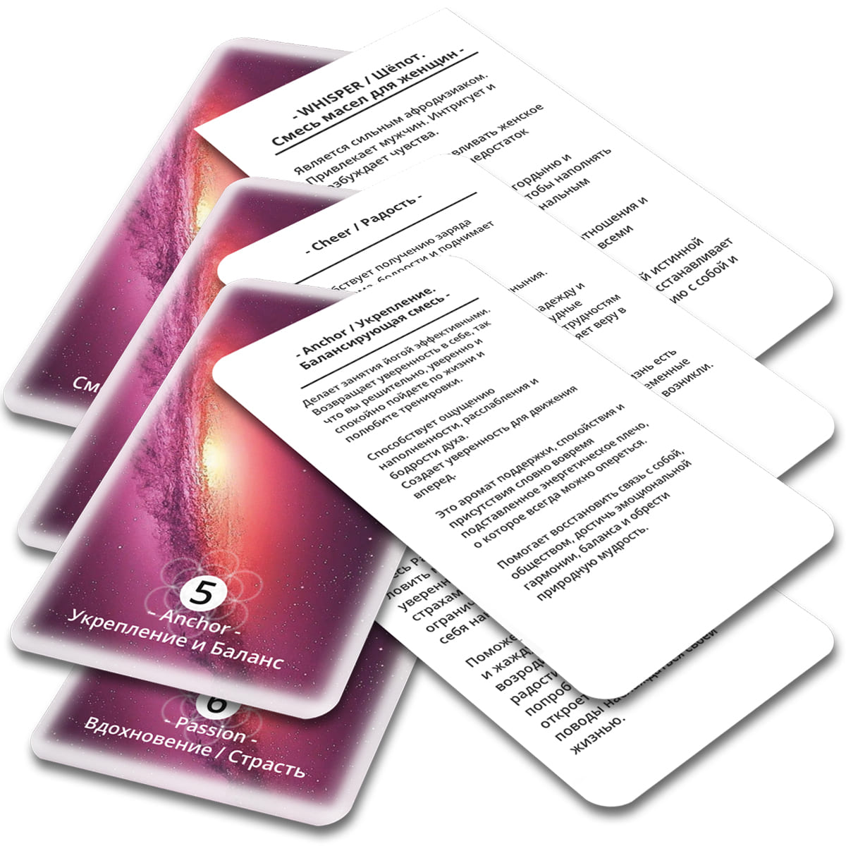 - Достает карту из колоды и читает описание, как эта смесь работает на психоэмоциональном уровне и меняет состояние.