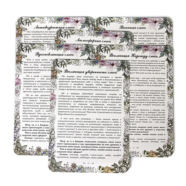 "Вопрос в эфире. Мономасла". В колоде 56 карт, которые соответствуют 56-ти смесям эфирных масел