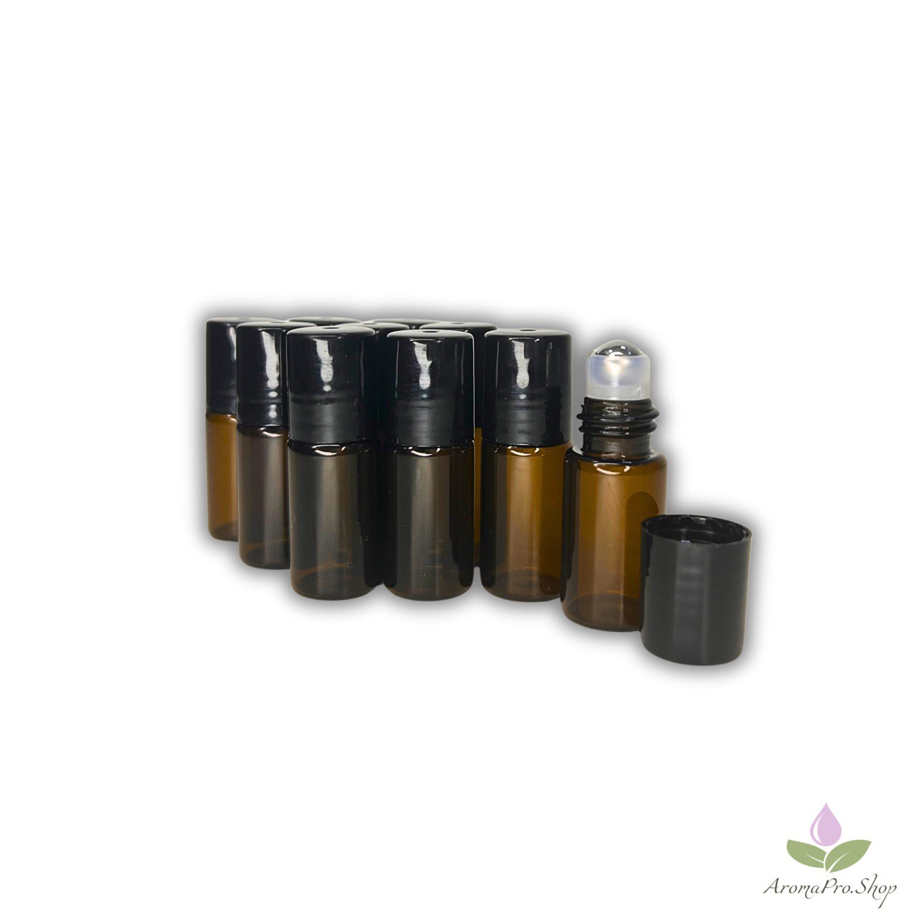 Набор флаконов пробников из темного стекла с металлически роллером.