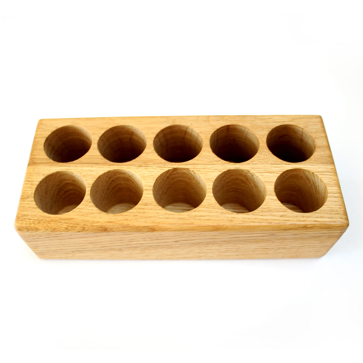 Экологичная, деревянная подставка из массива дуба для флакончиков масел на 15 и 5 мл, обработанная двойным слоем из воска и твердого масла - не испортится и не потеряет свой стильный, внешний вид!